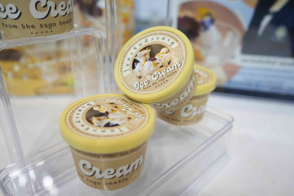 ไม่เพียงแค่นั้น คณะผู้วิจัยยังเล็งเห็นศักยภาพของด้วงสาคูที่มีโปรตีนสูง จึงได้ต่อยอดผลผลิตเป็น อาหารเพื่อสุขภาพ ในรูปแบบที่บริโภคได้ง่ายขึ้น เช่น “มีทบอลจากด้วงสาคู” และ “ไอศกรีมจากด้วงสาคู” เพื่อก้าวข้ามข้อจำกัดด้านรูปลักษณ์ที่อาจเป็นอุปสรรคต่อผู้บริโภค