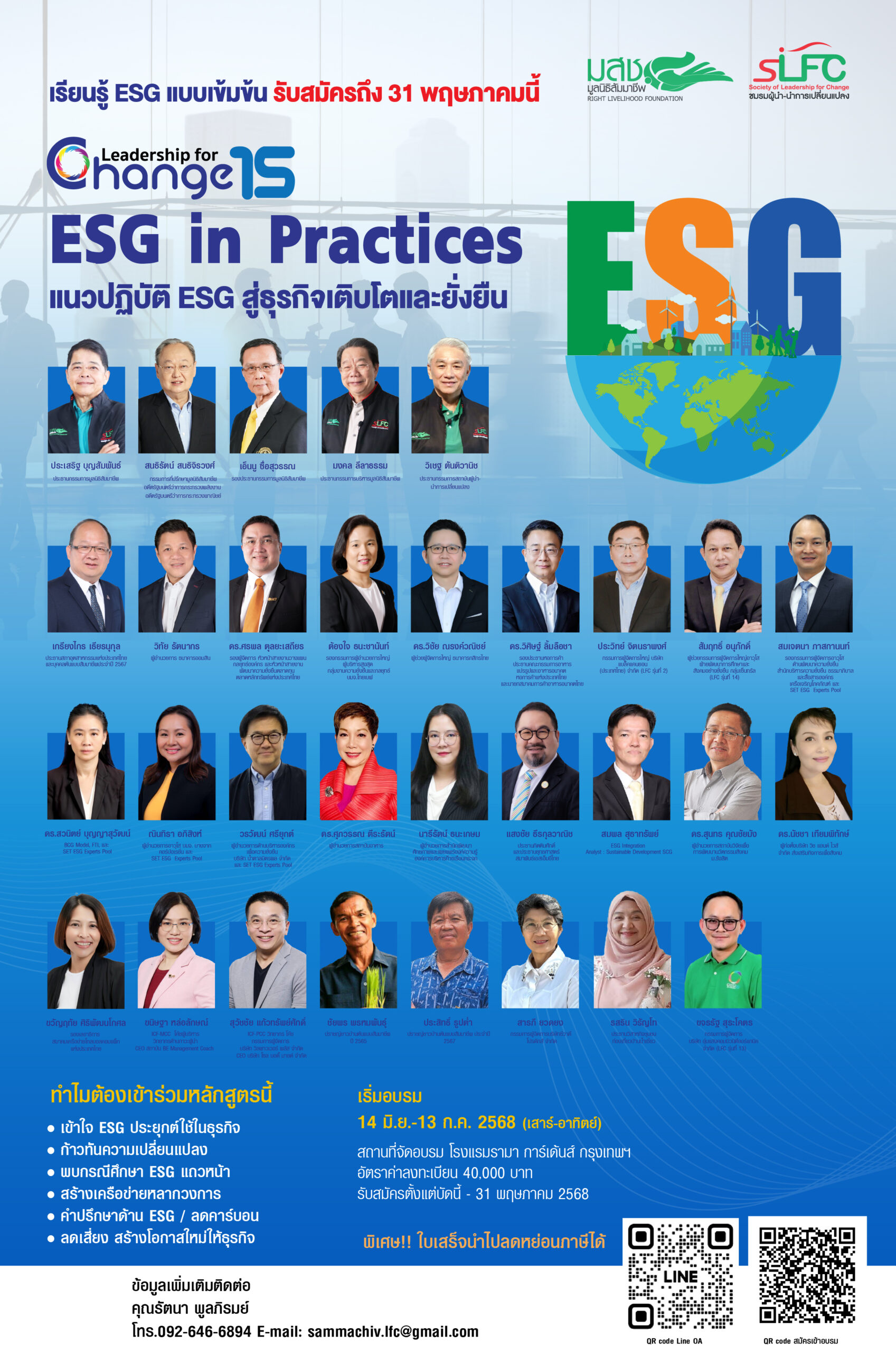 ‘มูลนิธิสัมมาชีพ’ เปิดหลักสูตร LFC รุ่นที่ 15 ESG in Practices ปรับธุรกิจให้โตยั่งยืน รับกติกาใหม่โลก