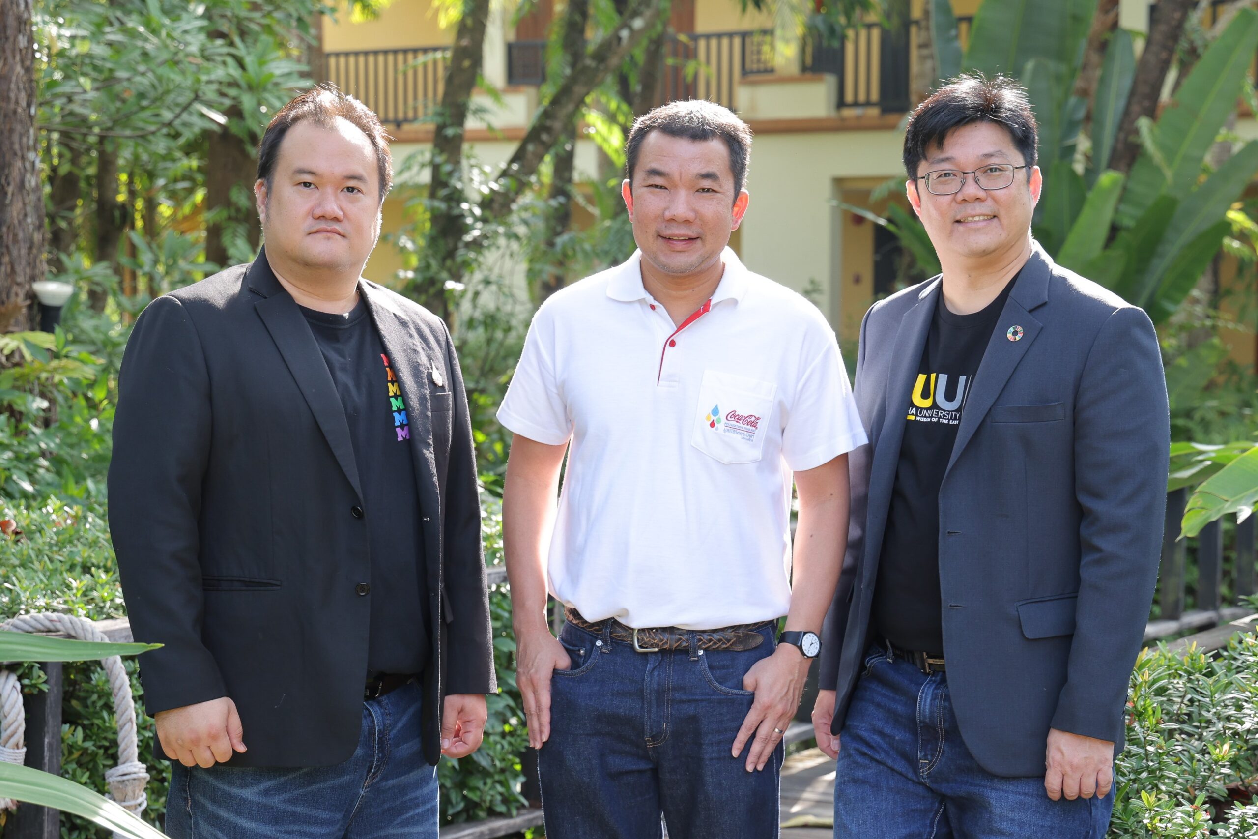คุณศรุต วิทยารุ่งเรืองศรี กรรมการและเลขานุการ มูลนิธิโคคา–โคลา ประเทศไทย (กลาง) พร้อมด้วย ผศ.ดร.ปเนต มโนมัยวิบูลย์ ผู้ริเริ่มโครงการ (ขวา) และดร.เขมชาติ เขมาวุฒานนท์ สำนักวิชาเทคโนโลยีดิจิทัลประยุกต์ มหาวิทยาลัยแม่ฟ้าหลวง ผู้ดำรงตำแหน่งหัวหน้าโครงการปัจจุบัน (ซ้าย)