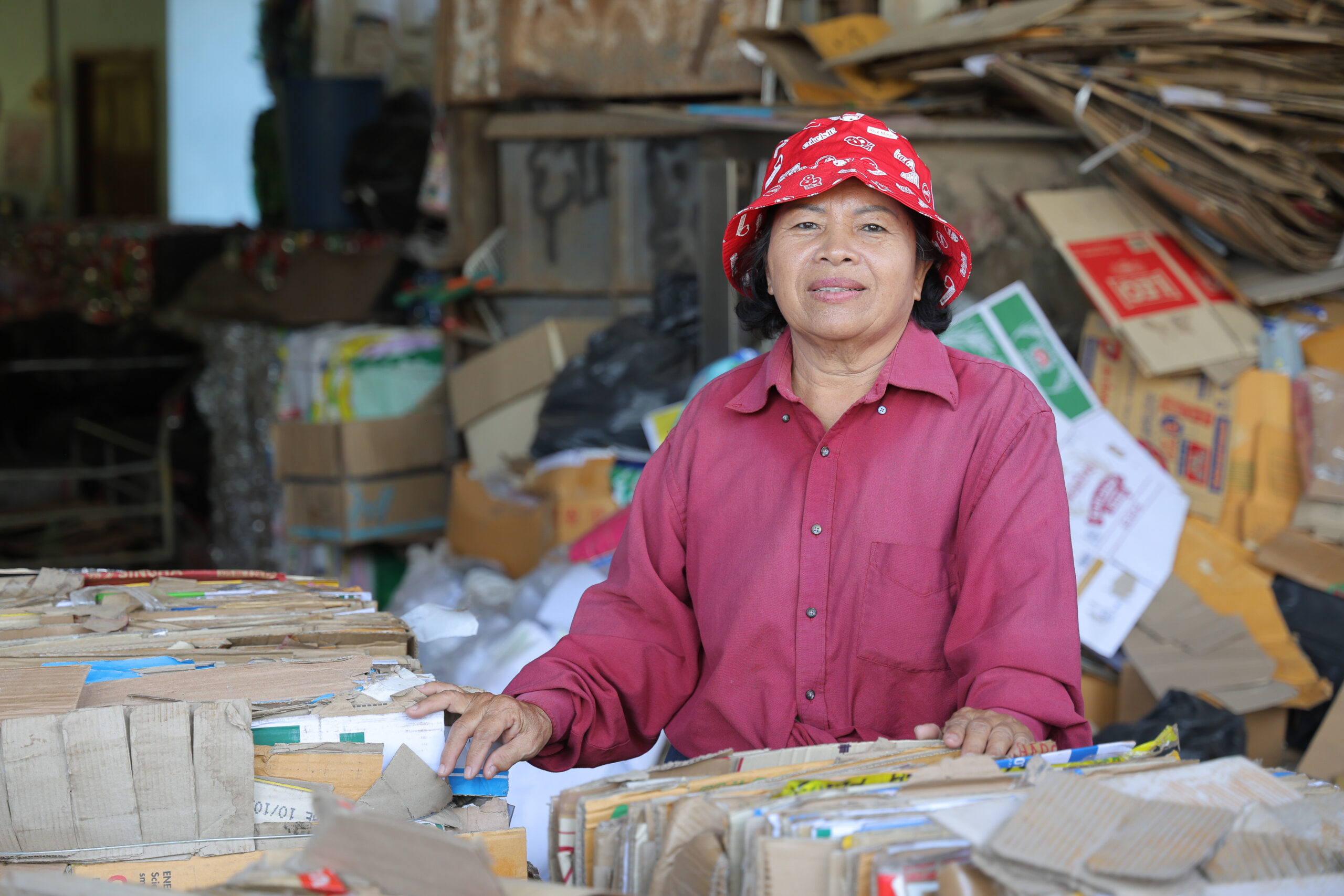 นางสาวจงกล วรรโณภาส หรือ ป้ากล หนึ่งในผู้ประกอบการรับซื้อของเก่าบนเกาะช้าง จ.ตราด ภายในร้านของตนเอง