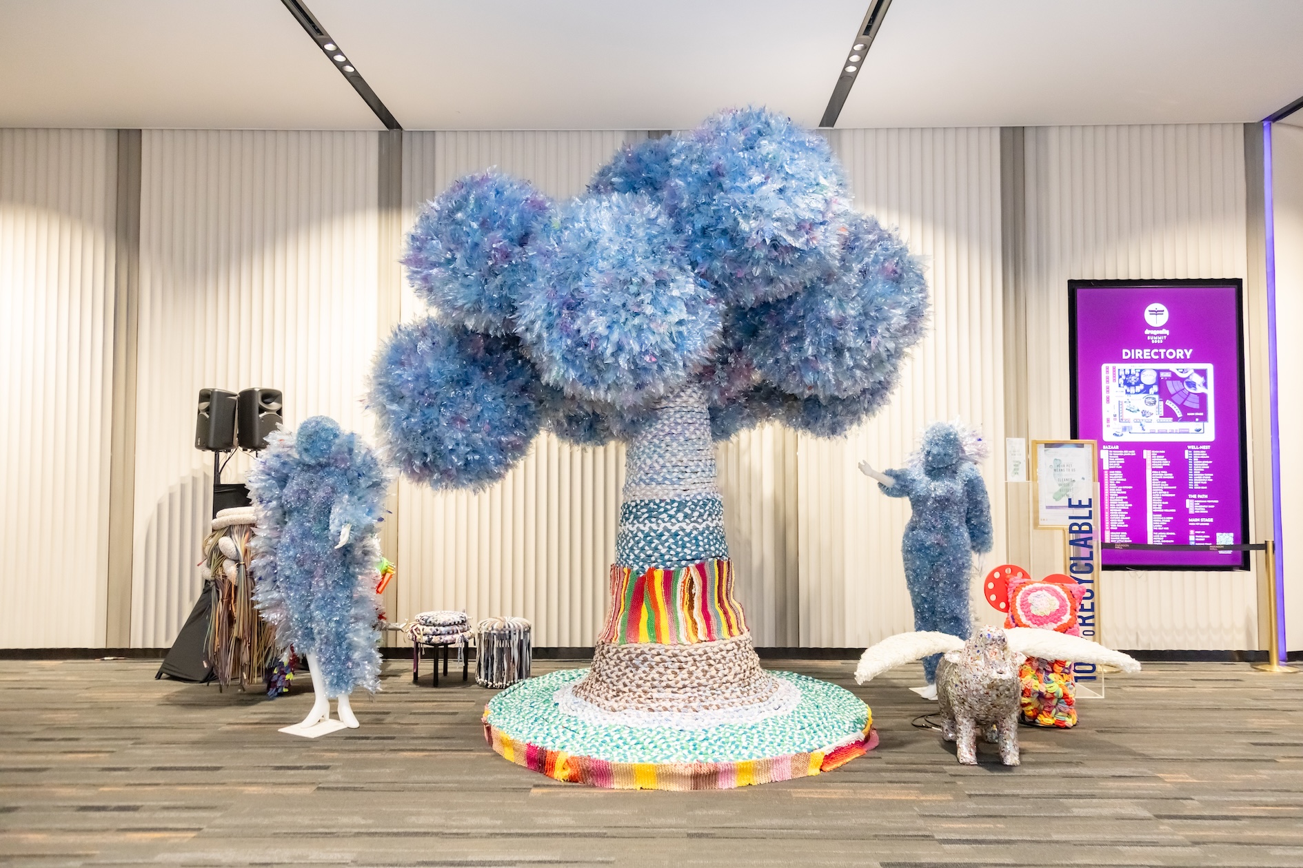งานนี้นับเป็นเวทีระดับนานาชาติที่รวมผู้นำความคิด ศิลปิน และนักสร้างสรรค์จากหลากหลายวงการ มาร่วมถ่ายทอดมุมมองการใช้ชีวิตอย่างมีคุณค่า ท่ามกลางเวทีเสวนาและกิจกรรมมากมาย หนึ่งในไฮไลต์ที่สะดุดตาผู้เข้าร่วมตั้งแต่ก้าวแรก คือ “ต้นไม้ PET” งานศิลปะจัดวาง (art installation) ขนาดใหญ่ที่ตั้งอยู่บริเวณทางเข้างาน เปรียบเสมือนสัญลักษณ์ต้อนรับผู้เข้าชมเข้าสู่โลกแห่งการเปลี่ยนแปลงทั้งภายในและภายนอก