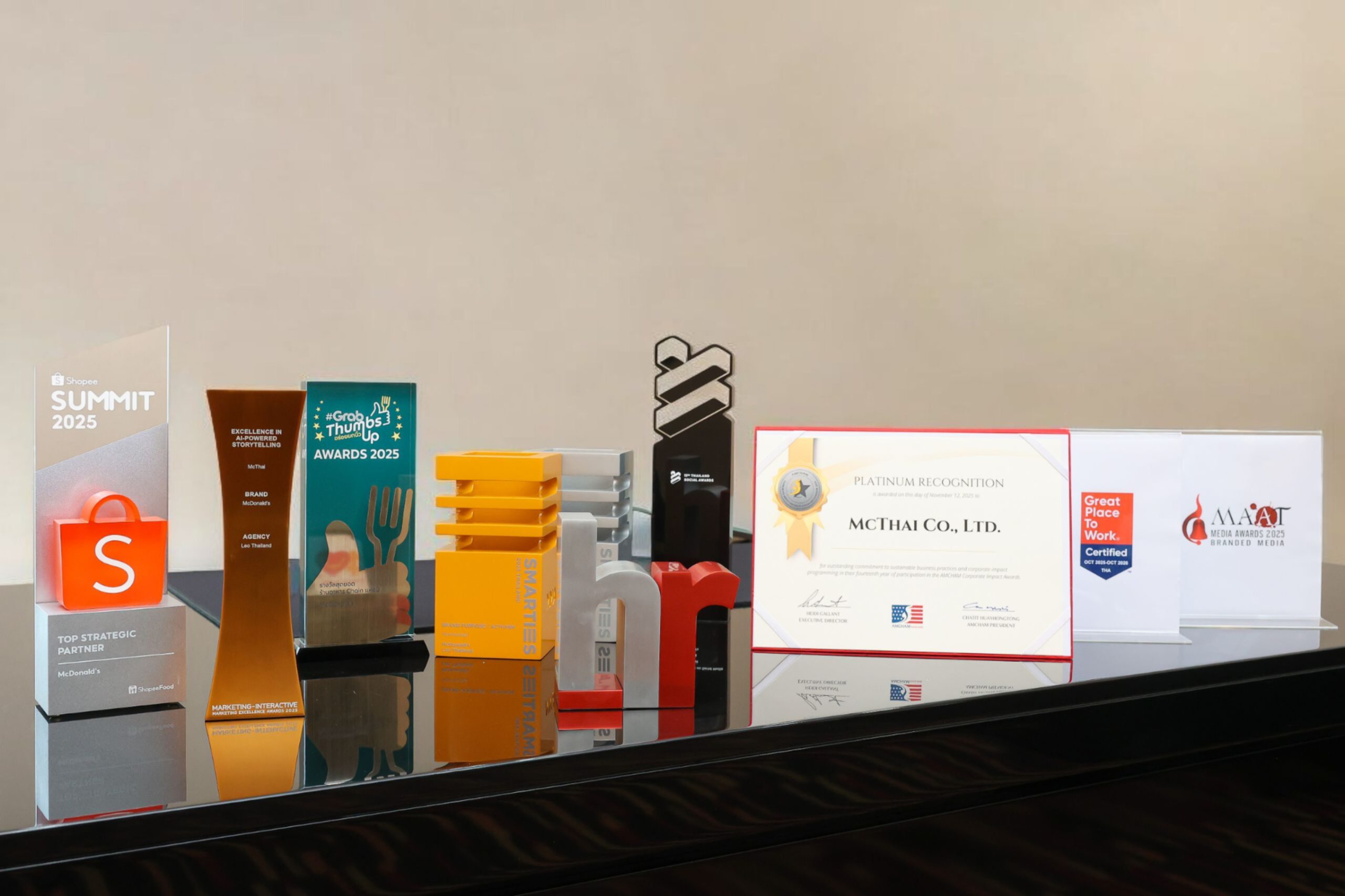 บริษัท แมคไทย จำกัด ผู้นำธุรกิจร้านอาหารบริการด่วน (QSR) ภายใต้แบรนด์ แมคโดนัลด์ ประเทศไทย คว้า 10 รางวัลอันทรงเกียรติจากหลายเวทีทั้งในประเทศและระดับสากล ครอบคลุมทั้งด้านกลยุทธ์ทางการตลาด, ทรัพยากรบุคคล และการสร้างผลกระทบเชิงบวกแก่สังคม ตอกย้ำความสำเร็จรอบด้านขององค์กรที่มุ่งมั่นสู่ความเป็นเลิศทางธุรกิจ พร้อมส่งมอบคุณค่าคืนสู่พนักงานและสังคมไทยอย่างต่อเนื่อง