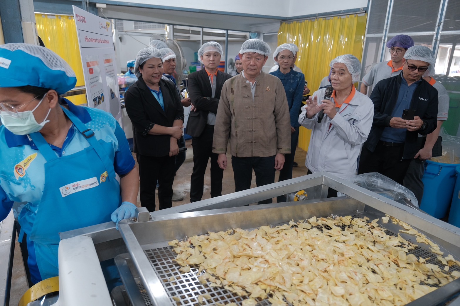 หนึ่งในกลุ่มธุรกิจชุมชนที่ประสบความสำเร็จจากการร่วมโครงการ คือ “วิสาหกิจชุมชนกลุ่มแม่บ้านเกษตรกรเขาบายศรี” ซึ่งเป็นผู้ผลิตทุเรียนทอดแบรนด์ “ป้าแกลบ” สินค้าขึ้นชื่อของจังหวัดจันทบุรี โดยโตโยต้าได้เข้าไปให้คำปรึกษาและแนะนำการปรับปรุงตั้งแต่ปี 2565 ผ่านการศึกษากระบวนการผลิตจริง ค้นหาความสูญเปล่า และพัฒนาวิธีการทำงานที่เหมาะสมใน 5 ด้านหลัก ได้แก่