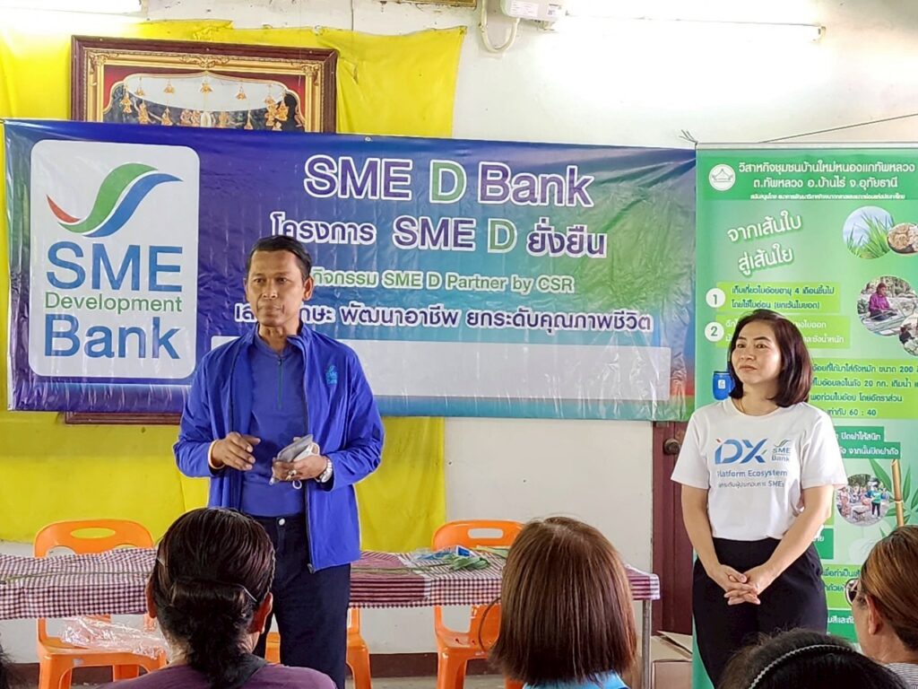 สำหรับกิจกรรม “SME D Partner by CSR” ธนาคารดำเนินการเชิงรุก ลงพื้นที่ถึงชุมชนต่าง ๆ ต่อเนื่อง เฉพาะปีนี้ (2568) จัดมาแล้ว 3 ครั้ง ได้แก่ วิสาหกิจชุมชนบ้านใหม่หนองแกทัพหลวง จ.อุทัยธานี วิสาหกิจชุมชน กลุ่มชุมชนวัดย่านอ่างทอง (จุฬาโลก) จ.พระนครศรีอยุธยา และวิสาหกิจชุมชนกลุ่มออมทรัพย์เพื่อการผลิตจักสานบ้านตลาดใหม่ จ.อ่างทอง ด้วยการเชิญวิทยากรของธนาคารที่มีความชำนาญด้านการเงิน และวิทยากรจากหน่วยงานพันธมิตรต่าง ๆ ที่มีความเชี่ยวชาญเฉพาะทาง มาถ่ายทอดความรู้ ตลอดจนอบรมเชิงปฏิบัติการ แนะนำแนวทางการพัฒนาชุมชนในหลากหลายมิติ เช่น การเขียนแผนธุรกิจ การบริหารการเงิน จัดทำบัญชี เทคนิคการทำตลาดยุคใหม่ผ่านสื่อออนไลน์ และการพัฒนาสินค้าเชิงนวัตกรรมและรักษ์โลก เป็นต้น ซึ่งจะสร้างประโยชน์ ผลักดันให้ผู้ประกอบการท้องถิ่นได้ยกระดับและเพิ่มมูลค่าสินค้า สามารถตอบความต้องการผู้บริโภคปัจจุบัน และเทรนด์ธุรกิจสีเขียวได้เป็นอย่างดี รวมถึง เปิดโอกาสเข้าถึงแหล่งทุน อัตราดอกเบี้ยพิเศษของ SME D Bank อีกด้วย