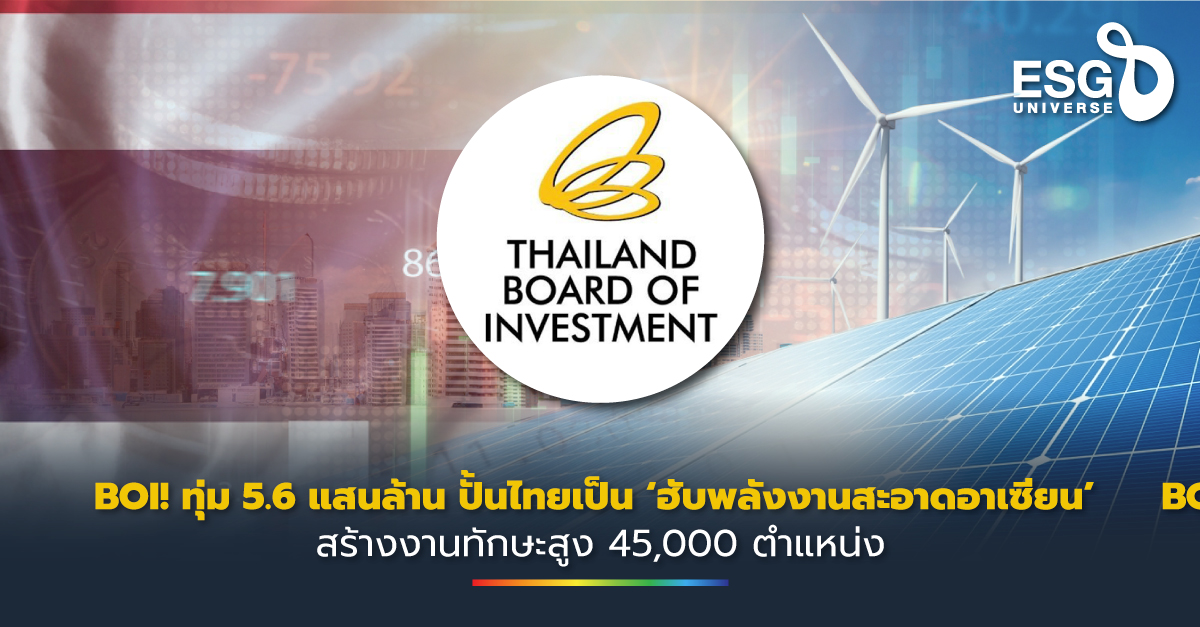 BOI ดึงทุน 5.6 แสนล้าน ดันไทย ‘ฮับพลังงานสะอาดอาเซียน’ สร้างงาน 45,000 ตำแหน่ง ฉกโอกาสทรัมป์ต้านโลกร้อน BOI ขับเคลื่อนการลงทุนพลังงานสะอาดผ่าน 2,900 โครงการ มูลค่ารวมทะลุ 5.6 แสนล้านบาท สร้างการจ้างงานกว่… พฤษภาคม 2, 2025 Read More