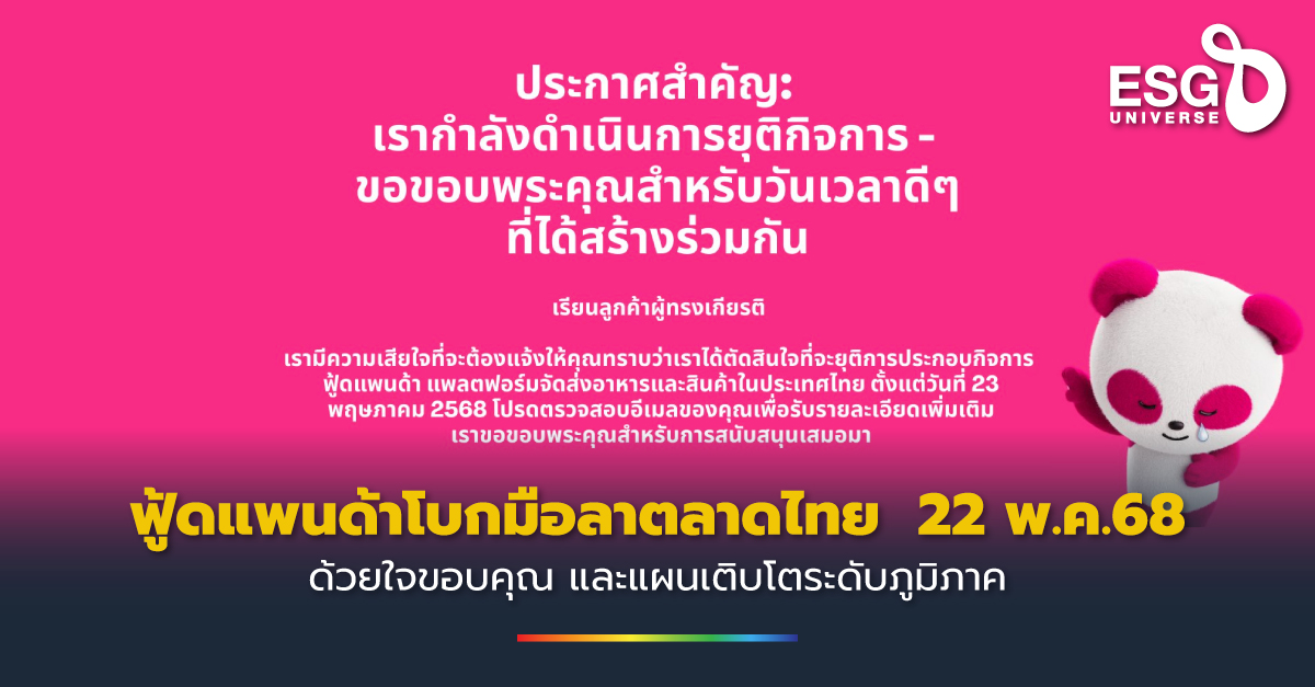 ฟู้ดแพนด้าโบกมือลาตลาดไทย 22 พ.ค.68 ด้วยใจขอบคุณ และแผนเติบโตระดับภูมิภาค เมื่อวันที่ 23 เมษายน 2568 บริษัท Delivery Hero ซึ่งเป็นบริษัทแม่ของ Foodpanda ได้ประกาศยุติ… เมษายน 23, 2025เมษายน 23, 2025 Read More